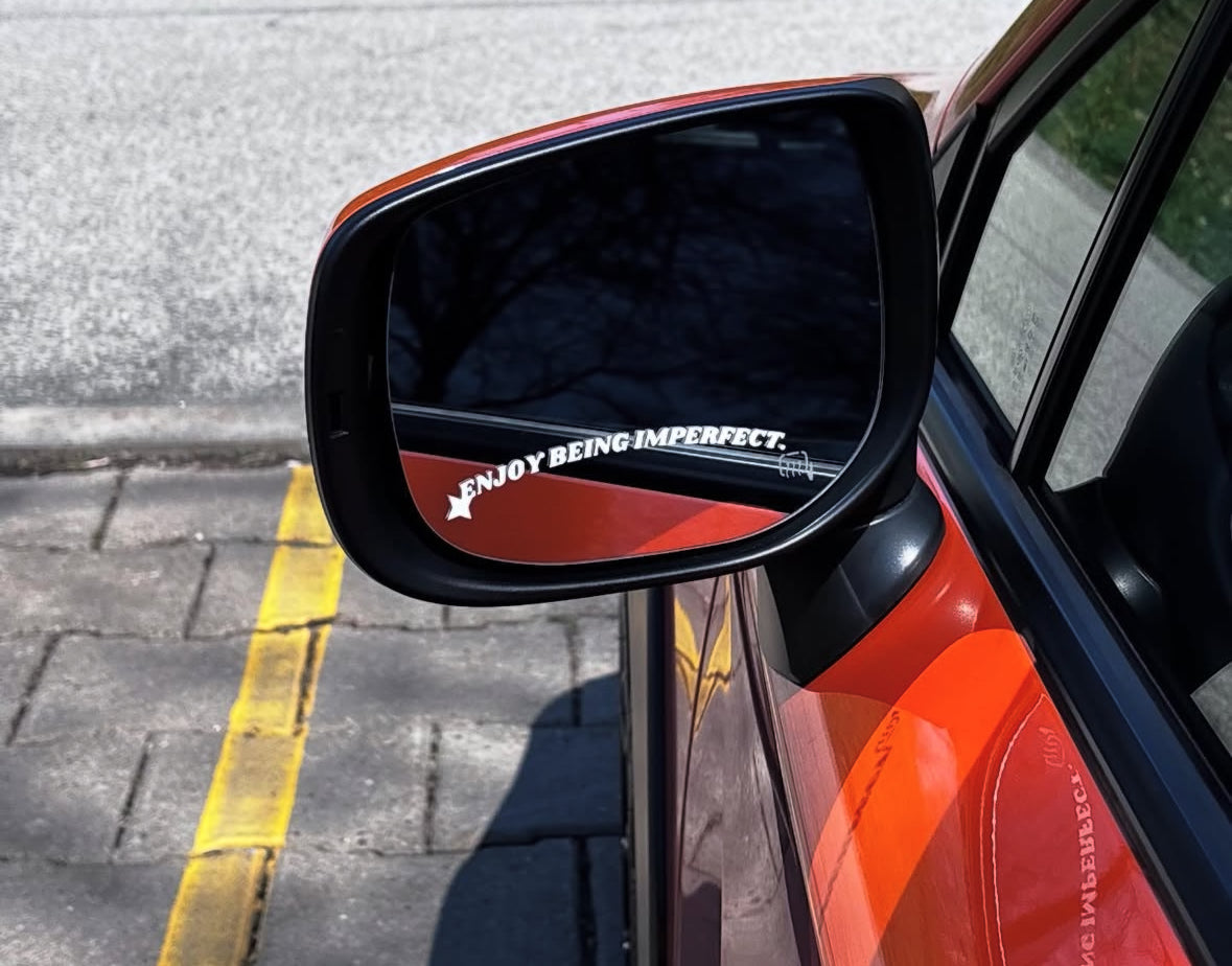 Enjoy being Imperfect side mirror sticker. W: 5in. H: 1in.